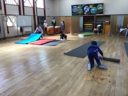 すると、太鼓の練習だけでなく、次の体育の授業の準備をしている子たちに出会いました。