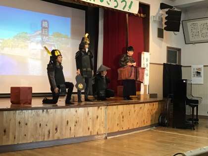 11月18(土) 学芸会4 公開日 2023/11/18 更新日 2023/11/18 校長室から 最後は、5・6年生の劇「徳川家康 天下統一物語」でした。 4人で力を合わせての演技は、いかがでしたか。