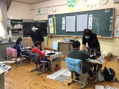 11月30日(木) 書き初め指導 公開日 2023/11/30 更新日 2023/11/30 校長室から 中学年は1時間目に高学年は2時間目に、書写ボランティアの講師、中島先生に書き初めの指導をしていただきました。書くポイントを教えてもらい、忠実に再現しようと筆を走らせました。 1月の書き初め大会に向けて、目標をもって取り組んでいきます。
