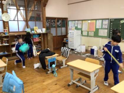 12月22日(金) 5時間目の様子 公開日 2023/12/22 更新日 2023/12/22 校長室から 低学年は大掃除?その後は楽しくゲーム(◯×クイズなど)をしました。 中学年は学級レクレーション(ジェンガやババ抜きなどのテーブルゲーム)をしました。 高学年は学級指導。その後は集会室でレクレーション(ジェスチャークイズ)で楽しみました。 休み前の最後の授業風景です。