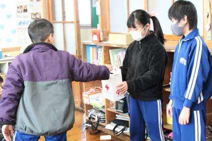1月11日(木) お年玉募金活動 公開日 2024/01/11 更新日 2024/01/11 特別活動 1月10日(水)〜12日(金)の間、お年玉募金活動に取り組んでいます。集まった募金は、世界の貧困で生活に苦しんでいる方や、能登半島地震災害で被災された方への支援に充てられます。運営委員会が中心となって全校児童に募金の意味を伝え、呼びかけています。