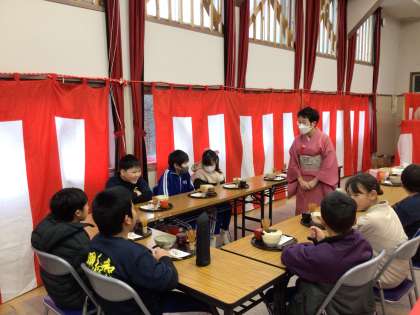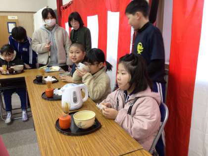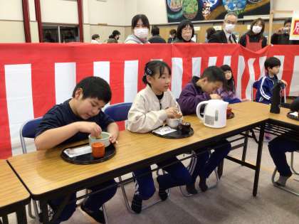 1月13日(土) 初釜の会1 公開日 2024/01/13 更新日 2024/01/13 校長室から 令和6年「初釜の会」が開催されました。 会の前の全校児童が地域の方からお茶の指導を受け、お点前の体験をしました。