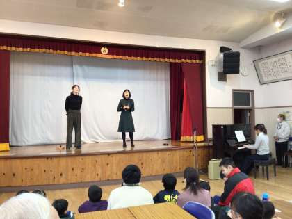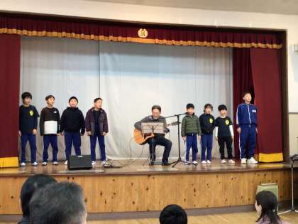1月13日(土) 初釜の会4 公開日 2024/01/13 更新日 2024/01/16 校長室から お楽しみ発表会。 初めは、川合様、中島様、安藤様による歌とピアノ演奏「エーデルワイス」「賢者の行進」 2番手は、河合様によるギター演奏「涙そうそう」「サボテンの花」 3番手は、安藤様と子どもたちによる「平沢塩の道 明和小校歌」 とても素敵な演奏でした。
