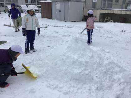 その後、全校で「かまくらづくり」に取り組みました。