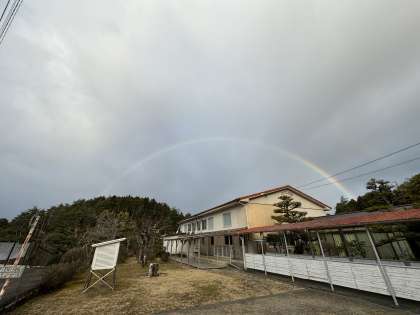 週の初めに集会室の向こうにかかった虹