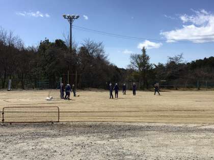 のびのびタイムにきれいになったグランドでサッカーをする子どもたち。