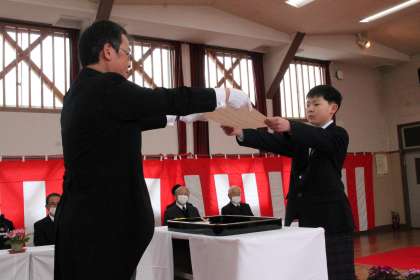 3月19日(火) 卒業式1 公開日 2024/03/19 更新日 2024/03/19 学校行事 本日、明和自治区長の安藤様をはじめ、多くの御来賓の皆様に参加いただき、卒業式を行いました。 卒業生は1名。たった一人の6年生として、明和小学校を引っ張ってきました。