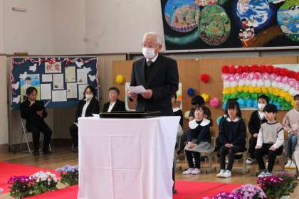 校長式辞の後、自治区長の安藤様、PTA会長の安藤様からご祝辞をいただきました。