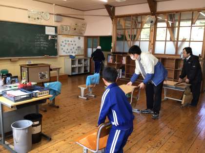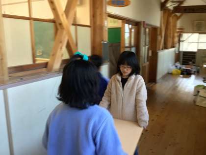 4月のスタートに向けて、2年生は3・4年教室へ、4年生は5・6年教室へ机を運びました。