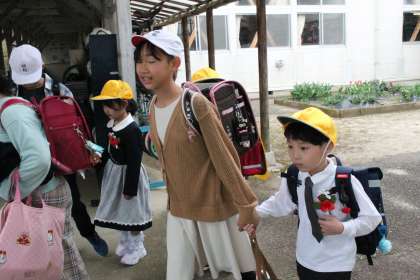 1年生。仲良くハイポーズ。 笑顔で下校です。 明日から、元気よく登校しましょう。