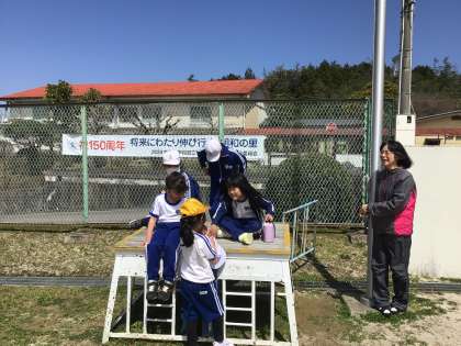 4月10日(水) なかよしタイム 公開日 2024/04/10 更新日 2024/04/10 校長室から 昨日とは違い、青空の下で仲良しタイムを過ごすことができました。 運動場は、桜(八重桜)と子どもたちの笑顔の花が満開でした。