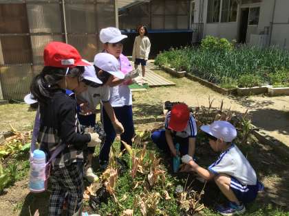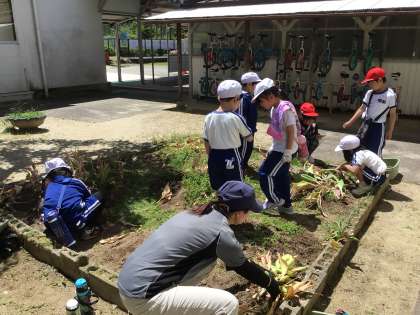 5月10日(金) 生活科(低学年) 公開日 2024/05/10 更新日 2024/05/10 各学年から 4時間目、1・2年生は生活科の時間にチューリップの球根を掘りました。 ダンゴムシやミミズと遊びながら、チューリップ畑をきれいにしました。