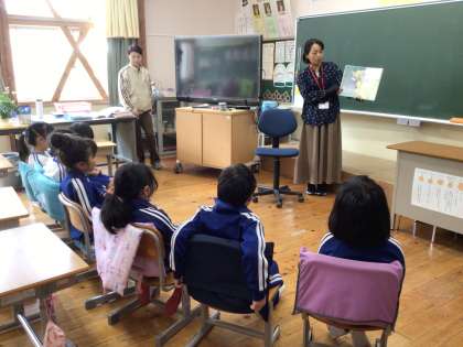 低学年は図書館司書の林さん、中高学年はボランティアの庄司さんに絵本を読んでいただきました。
