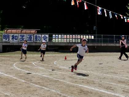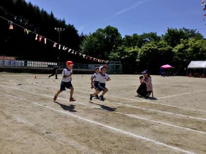 徒競走、低学年は40M、中学年は80M、高学年は100Mで競い合いました。