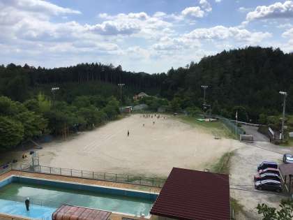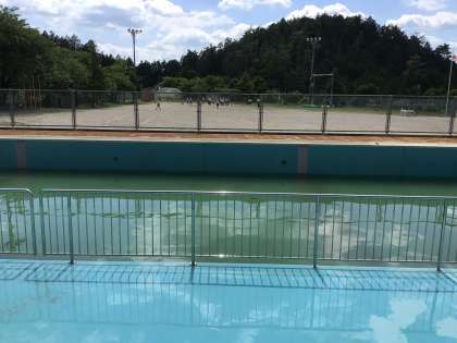 金曜日のプール掃除に向けて、公務手の中根さんが準備(プールまわりの掃除など)をしてくれています。