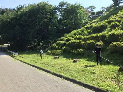 6月8日(土) 環境整備作業1 公開日 2024/06/08 更新日 2024/06/08 校長室から 朝、7時50分。地域の方々、PTAの皆さん(合計40人弱)集まっていただき、環境整備作業を行いました。 展望台の下の法面、校地の法面、里山の草刈り、中庭の草取り、T字路上の樹木の伐採など広範囲にわたって作業をしていただきました。