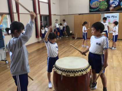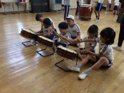6月10日(月) 明和太鼓練習1(その2) 公開日 2024/06/10 更新日 2024/06/10 学校の特色ある活動 実際に太鼓をたたいてみると、目の輝きが変わります。 下学年の子に教える上学年の子たちの姿がとても素敵です。