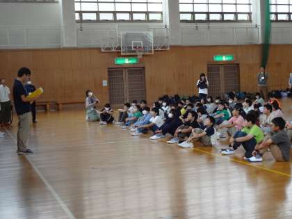5年生キャンプ 1入所式 公開日 2024/06/18 更新日 2024/06/18 各学年から 13日〜14日に5年生がキャンプに行ってきました。その時の様子を時系列順に挙げていきます。 自然の家に着いて、まず入所式をしました。児童代表の言葉や所長さんのお話を真剣に聞く様子でした。