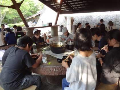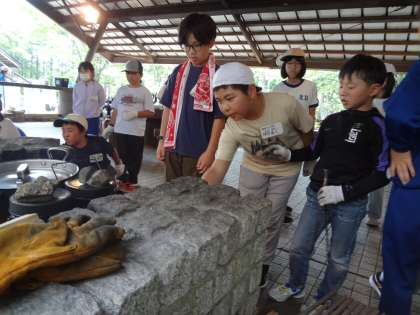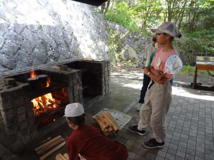 メタルスプーン作りのあと、野外炊飯に取り組みました。火を起こす係、ごはん係、カレー係の3つを班で役割分担しました。その係の仕事を一生懸命取り組み、みんなでおいしいカレーライスを作ることができました。
