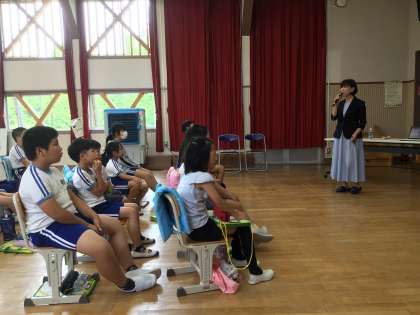 6月27日(木) 学校保健委員会2 公開日 2024/06/27 更新日 2024/06/27 学校行事 次に笑顔クリエーターの丹羽てる美様による講話です。 会場全体を巻き込みながら、楽しくお話をしていただきました。 笑顔と言葉の大切さを教えていただきました。
