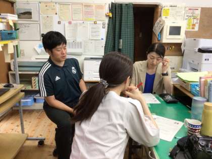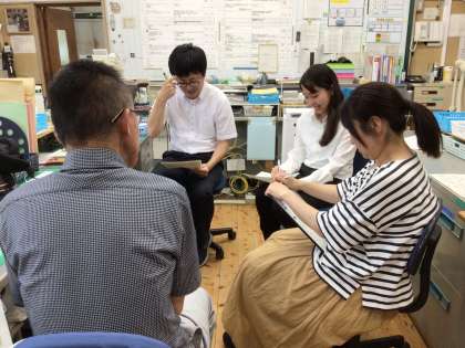 2グループに分かれて、事例(ストレスによる盗撮案件・過度な生徒指導とSNS案件)をもとに問題点、未然防止策、対応などについて話し合い、その後、意見交流しました。