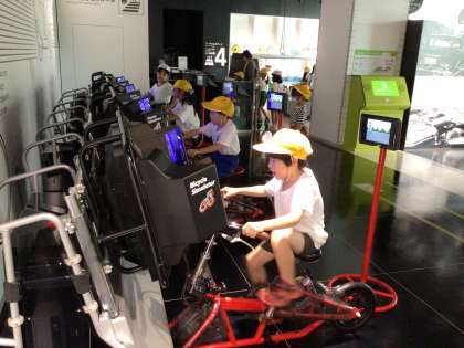 その後、展示体験では、さまざまな測定機器、シミュレーターを使って安全に行動する体験を行い、シアター学習では、交通安全クイズを通して、安全に道路を渡る方法を学びました。