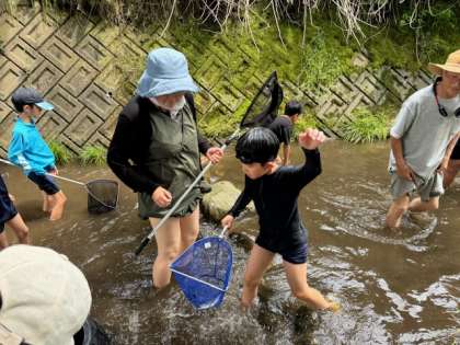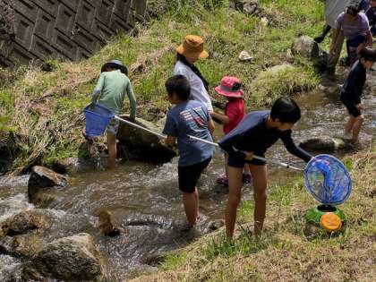 7月20日(土) 阿摺川「川遊びの会」 公開日 2024/07/22 更新日 2024/07/22 校長室から 20日、阿摺川の清流を愛する会の主催による「川遊びの会」が行われました。 初めの会の後、明川集会所にて、豊田市環境保全課によるミニ講座「川調べ 身近な川はきれい?」が行われました。 その後、阿摺川の探索、魚の手づかみ、昼食会などが行われました。 明和っ子のきらきら輝く姿がそこにありました。