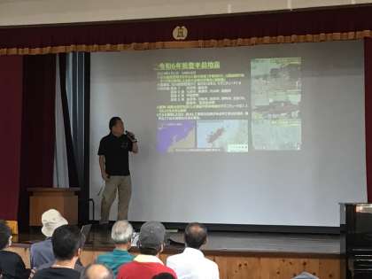 8月25日(日) 明和自治区防災訓練1 公開日 2024/08/25 更新日 2024/08/25 学校行事 本日、明和小学校において自治区の防災訓練が行われました。 まず、集会室にて、生涯学習出前講座「災害に備える〜能登半島地震から学ぶ〜」が行われました。