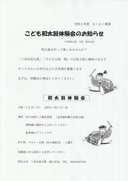 こども和太鼓体験会のおしらせ