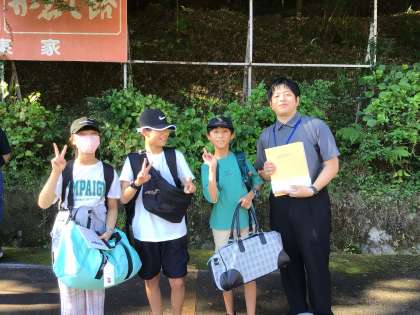 9月12日(木) 修学旅行1 公開日 2024/09/12 更新日 2024/09/12 学校行事 雲ひとつない空の下、6年生3名は宮町駐車場に集合しました。 修学旅行出発式を行いました。 暑さと向き合いながら元気よく行ってきます。