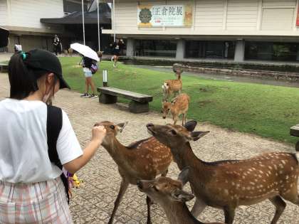 9月12日(木) 修学旅行5 公開日 2024/09/12 更新日 2024/09/12 学校行事 東大寺の見学をしました。 鹿のフンを避けながら、南大門を通り抜け大仏殿に到着しました。 その後、鹿せんべいを買い、鹿と奮闘しながらせんべいを配りきりました。