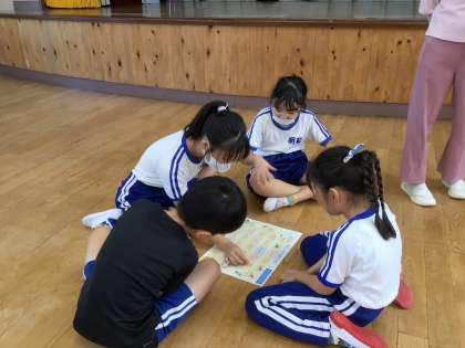 9月18日(水) お楽しみ集会 公開日 2024/09/18 更新日 2024/09/18 特別活動 0時間目に集会室でお楽しみ集会をしました。 5つのグループに分かれて、「おしゃべりすごろく」をしました。 コマが止まったところの指示に従って、おしゃべりをします。 友達の話をよく聞くことを目標にしながら、すごろくを楽しみました。