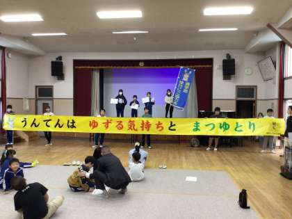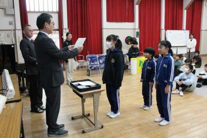 11月11日(月) 月曜朝会 公開日 2024/11/11 更新日 2024/11/11 特別活動 月曜朝会で、夏休みの科学研究の表彰と交通安全標語の表彰・披露がありました。 横断幕「うんてんは ゆずる気持ちと まつゆとり」も完成しました。