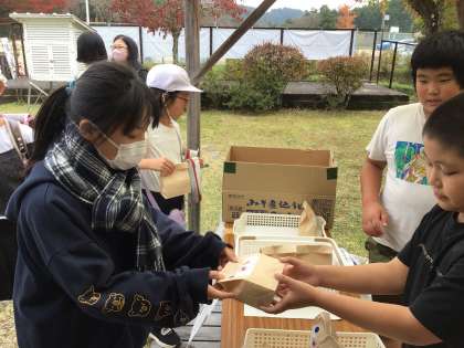学芸会終了後には、たいよう学級から、本日見に来ていただいた皆さんと全校児童に昨日つくったポップコーンが振舞われました。