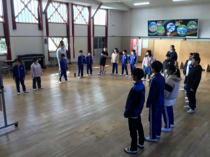 11月29日(金) ハーモニータイム 公開日 2024/11/29 更新日 2024/11/29 学校の特色ある活動 学芸会が終わって、初めてのハーモニータイム。 今日は発声練習を中心に行いました。 高学年が12月の歌「夢の世界を」のお手本を聴かせてくれました。