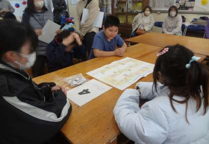 12月13日(金) あすけお楽しみパーティー(たいよう) 公開日 2024/12/13 更新日 2024/12/13 各学年から あすけお楽しみパーティー(特別支援学級交流会)に参加しました。最初に、グループに分かれて自己紹介すごろくをしました。体育館では、5年生をお手本にダンスをしたり、6年生が考えたクイズに答えたり、中学生が選んだ曲に合わせてみんなで楽器を演奏したり歌を歌ったりして楽しみました。