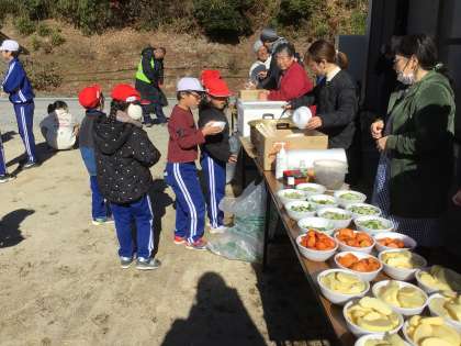 走り終わった後は、お楽しみの豚汁と焼き芋です。