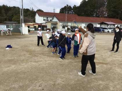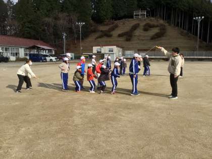 今日は大縄跳びにチャレンジしました。赤白に分かれて10回跳ぶことを目標にしました。