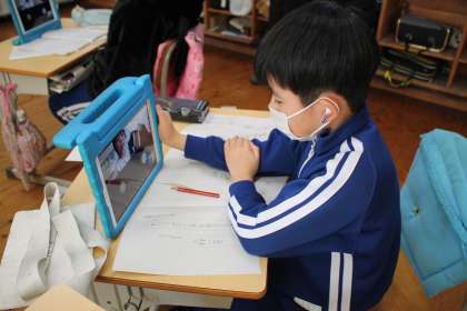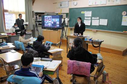 1月16日(木) 研究授業(中学年) 公開日 2025/01/16 更新日 2025/01/16 各学年から 5時間目に3・4年生が国語科の研究授業を行いました。萩野小学校、新盛小学校の3・4年生とオンラインでつないで「俳句に親しもう」の授業をしました。子どもたちはそれぞれが作成したオリジナル俳句集の中からベスト1の俳句を紹介し合いました。