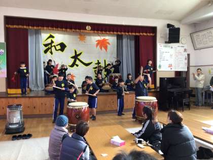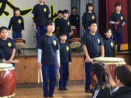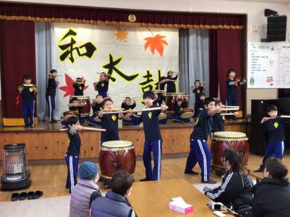 1月18日(土) 初釜の会2 公開日 2025/01/18 更新日 2025/01/18 特色ある学校づくり推進事業 初釜の会、オープニングは「明和太鼓」の発表です。 今年度の集大成。心を一つにして演奏しました。