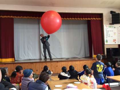 5番目は神谷先生による「なんちゃってサイエンスショー」でした。大きな風船を膨らませて太陽をつくりました。