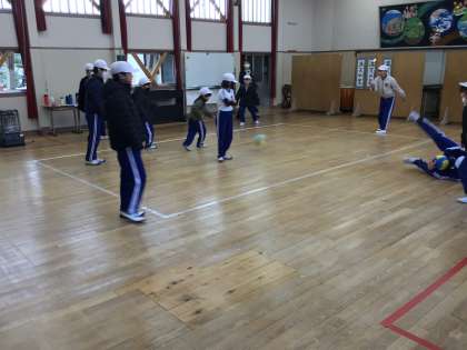 1月28日(火) 健康チャレンジ4 公開日 2025/01/28 更新日 2025/01/28 特別活動 今日の健康チャレンジは「転がしドッジボール」でした。 10回逃げ切れれば、カードがもらえます。 さて、結果はどうでしたか。