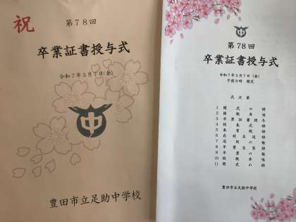 本日、足助中学校で第78回卒業証書授与式がありました。