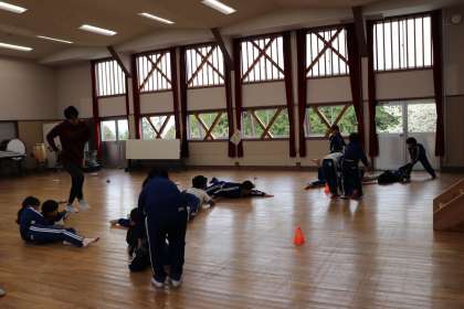 雨が続き、運動場の状態が悪い日は集会室で遊んでいます。最近流行っているは「だいこんぬき」です。
