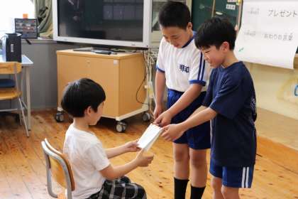 「全校かくれんぼ」では学校中のいろいろなところに隠れて、とても楽しい様子でした。またプレゼントが用意されていて、受け取った1年生はとてもうれしそうでした。あたたかい会となり、大成功でした。