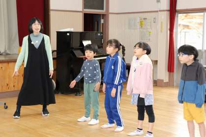 ハーモニータイムから始まりました。全校で集会室に集まって「怪獣のバラード」を歌いました。歌っているうちに楽しくなり、自然に笑顔になっていました。これからの歌声がますます楽しみです。