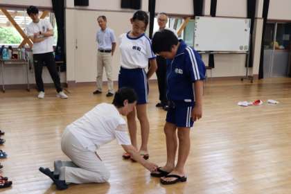 明和小学校の卒業生である五反田の安藤様、野田様がご兄弟姉妹で見えになりました。野田様からは、下駄をはじめ、和小物をたくさんいただきました。子どもたちは「下駄って聞いたことあるけど、初めて見た〜!」「すごーい!カッコいい!!」と素敵な贈り物に目をキラキラさせていました。大切に使わせていただきます、ありがとうございました。