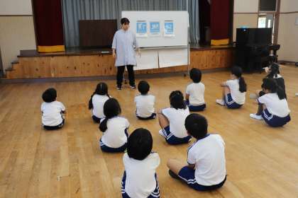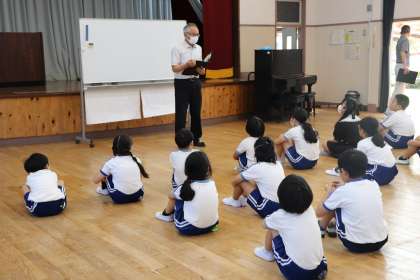 夏休み明けの今日、みんな笑顔で登校しました。0時間目に行われた集会では、校長先生の「おかえり」の言葉に元気いっぱい「ただいま」とこたえてくれました。また9月1日は“防災の日”です。校長先生や担当の先生から、自分の身を守るためのお話も聞きました。