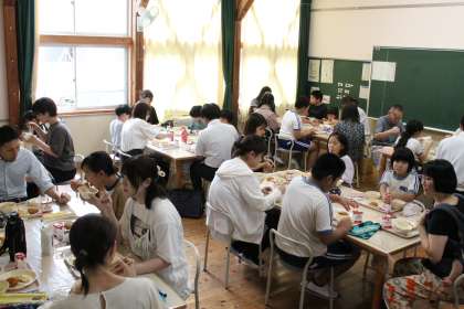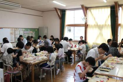 親子で会食を楽しみながら、給食の献立や、日ごろの給食の様子について、保護者の皆様にご覧いただくことができました。