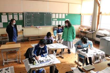書初め大会を行いました。1・2年生は硬筆、3〜6年は毛筆で作品を書きました。どの子も集中した様子で、納得のいく作品が書けたようでした。作品は「初釜の会」で展示しますので、ぜひご覧ください。